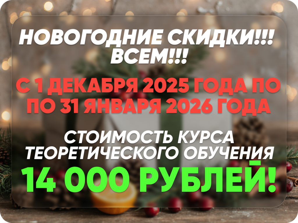 С 1 ДЕКАБРЯ 2025 ГОДА ПО по 31 января 2026 года СТОИМОСТЬ КУРСА ТЕОРЕТИЧЕСКОГО ОБУЧЕНИЯ –14 000 РУБЛЕЙ!